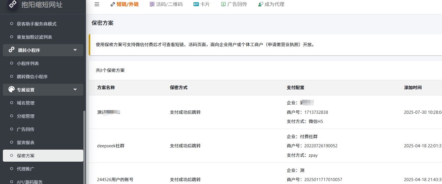 - 如果需要在投放中通过支付来过滤不精准的客户,可以使用【保密方案】功能,详细操作步骤