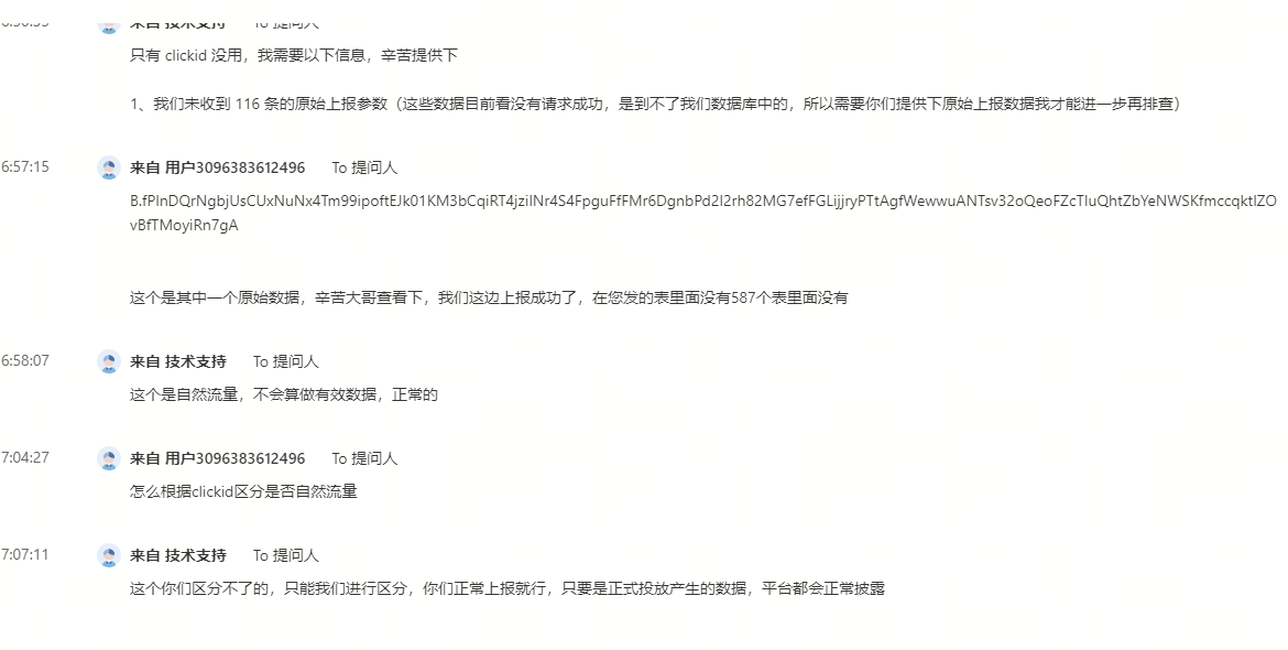 2. 解决办法:如果对具体数据有疑虑,可以从留资报表中导出成功上报的clickid,通过工单提交给媒体客服,让其查询确认,如下图