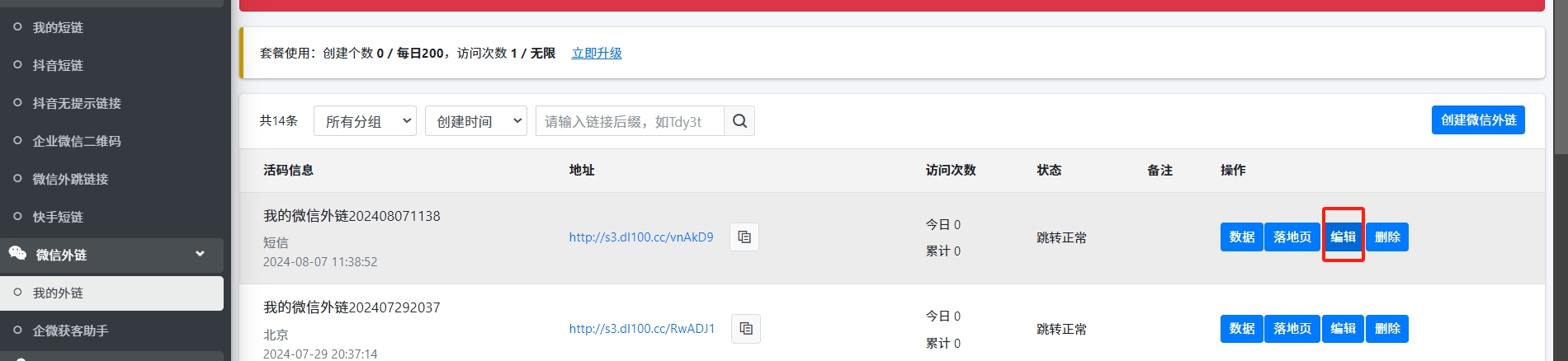 1. 点击【编辑】修改刚才的外链